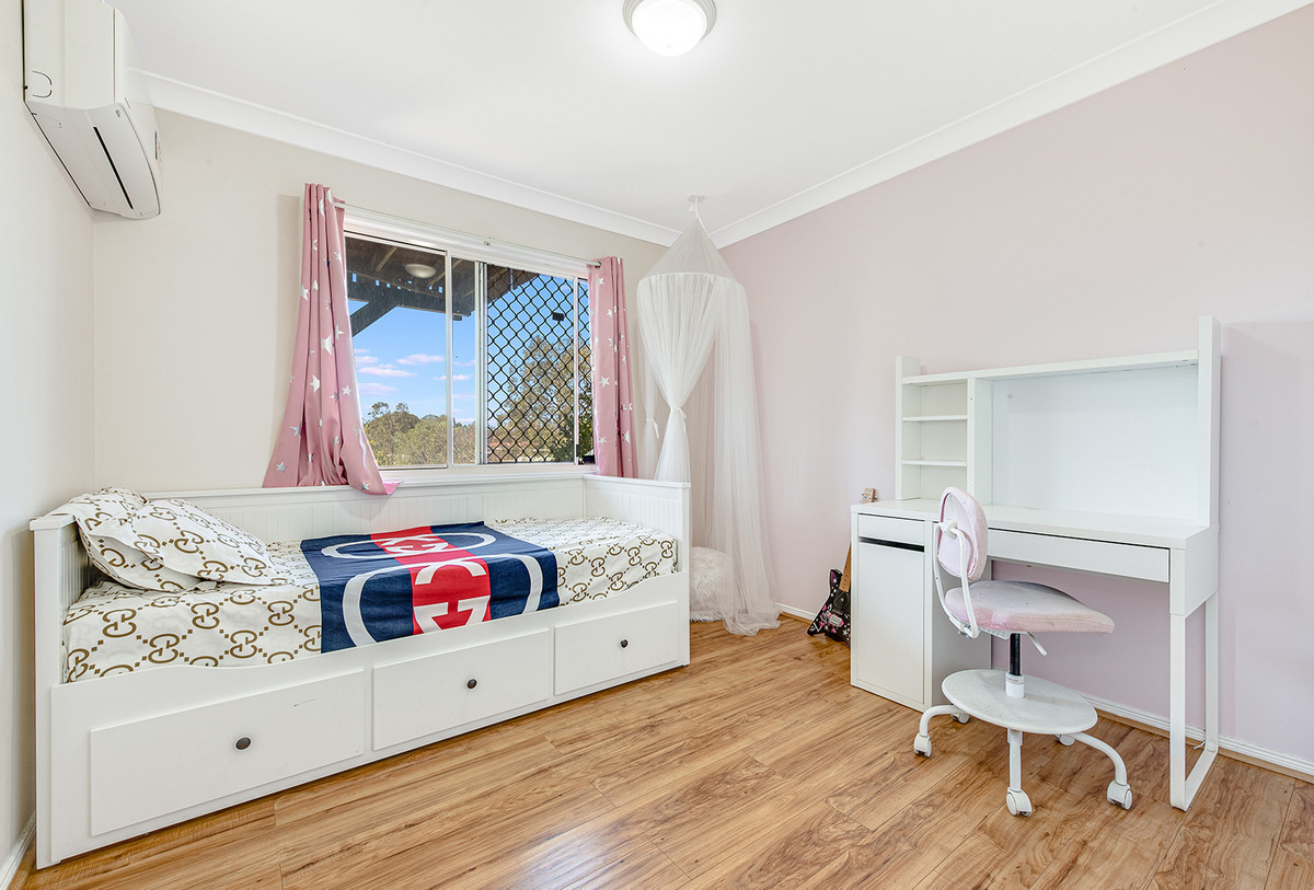 – Master suite featuring walk-in wardrobe, en-suite bathroom, and air conditioning.