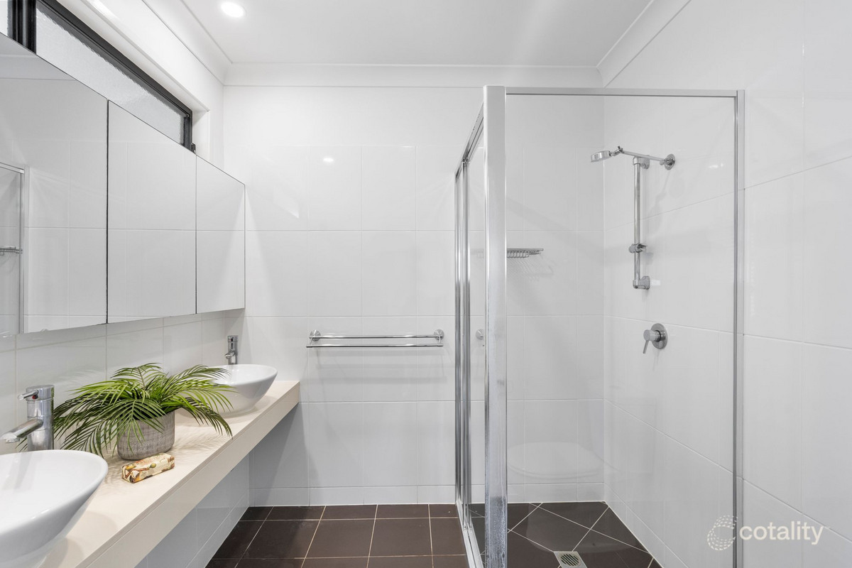 The open-plan living area is enhanced with seamless indoor to outdoor connection which leads to a generous north-facing courtyard, perfect for hosting or unwinding. Upstairs, the master bedroom offers a peaceful retreat complete with ensuite and his and hers sinks, walk-in robe and private balcony that adds an additional layer of separation. This is a home where form and function work in perfect balance.