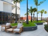 – The open plan living and dining area seamlessly integrates the well appointed balcony with city views.