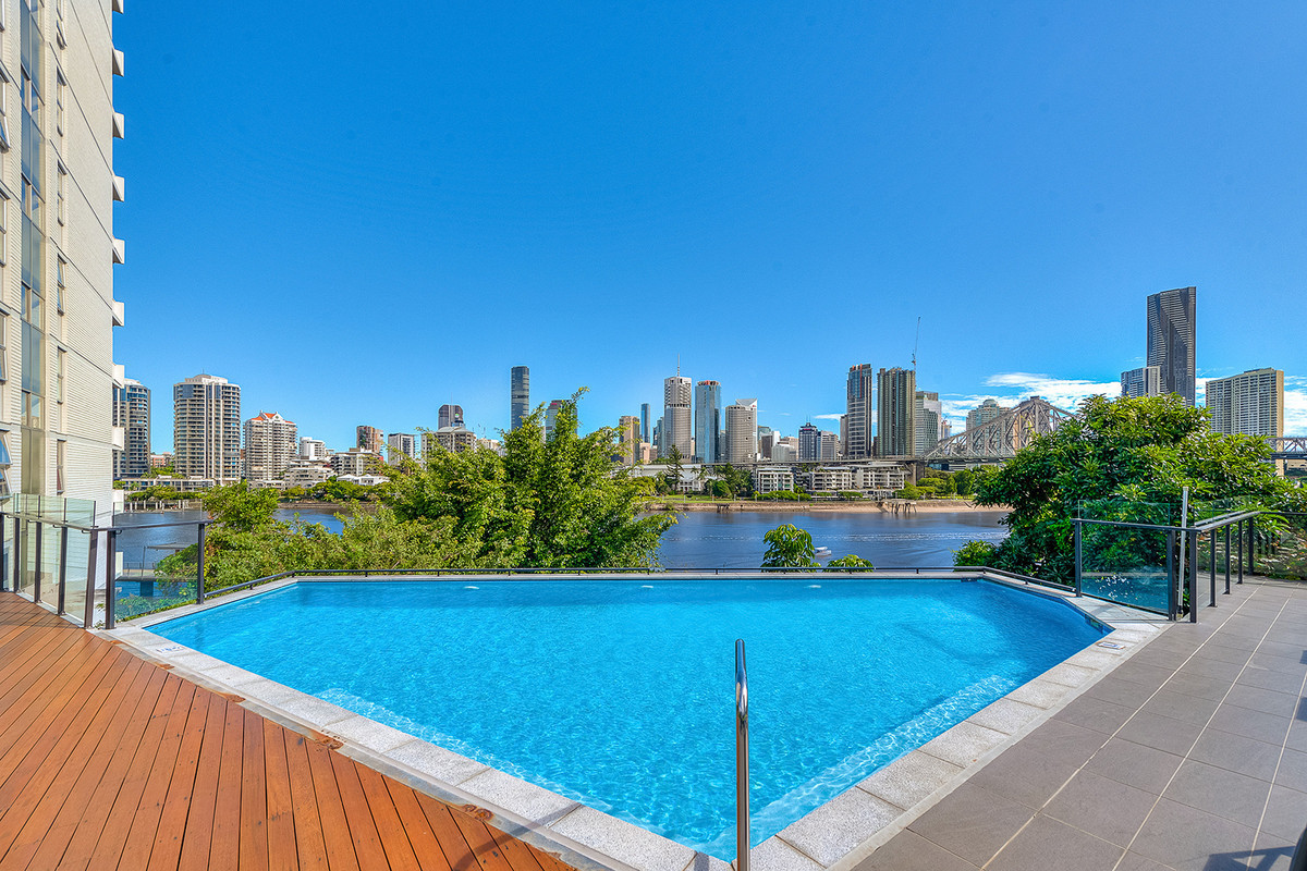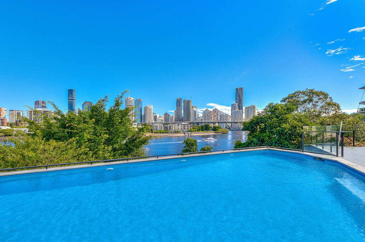 – Sparkling swimming pool with large deck overlooking the City, River & Story Bridge.