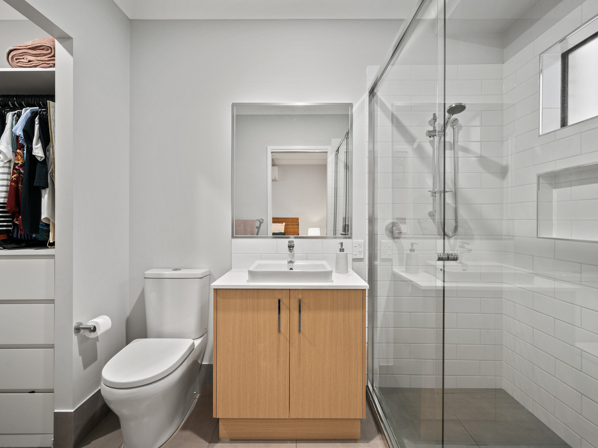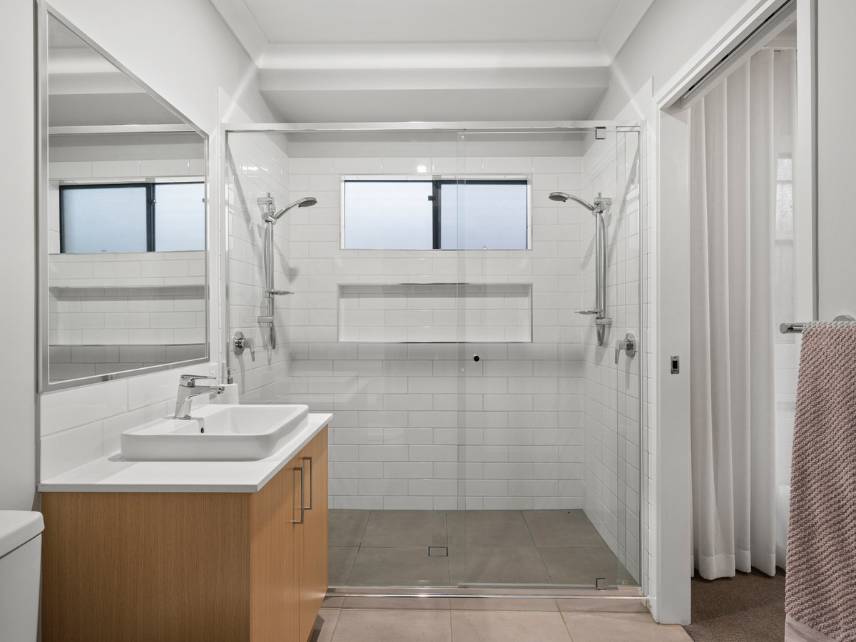 – Air-conditioned master retreat with walk-in robe and ensuite featuring a large twin shower.