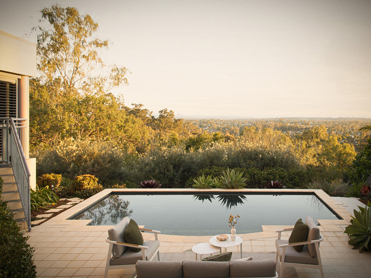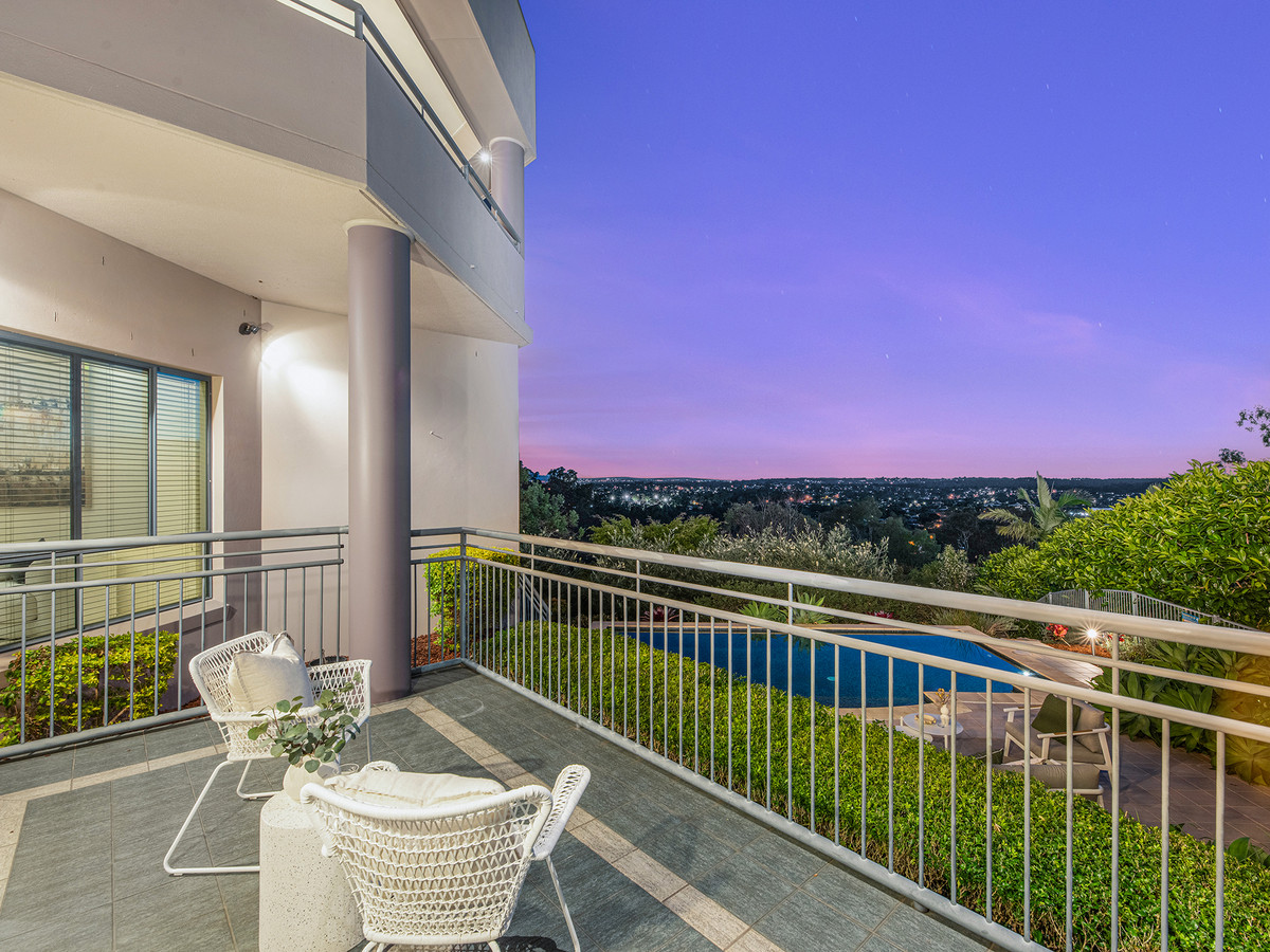 What We Love: – Elevated summit position with five iconic panoramic views: river, lake, golf course, mountain ranges, and city skyline – Located in Mount Ommaney’s most exclusive and private cul-de-sac – Architecturally designed family entertainer with refined finishes and superior privacy – Timber plantation shutters throughout and high-quality custom timber details – Oversized master suite with spa bath, bidet, expansive ensuite, and panoramic views – 3 additional generous bedrooms with built-in robes and natural light – Multiple living and entertaining areas across both levels – Spacious kitchen with stone granite benchtops, reverse osmosis filtered water system, and a quiet and powerful Australian-made Qasair rangehood, ample storage with a built-in light-up display cabinet, and stunning outlook – A standout feature of the home is its integrated sound system, with built-in speakers and individual control panels in every living area and bedroom, allowing you to tailor the ambience in every corner of the home. – a private balcony to watch the fireworks from Peter Lightfoot Oval during Christmas carols – Triple car garage with internal access, large driveway, and manicured gardens – Separate laundry, main bathroom with bathtub, and guest powder room – Central Air conditioning, solar panels, soaring ceilings, and premium lighting throughout Location