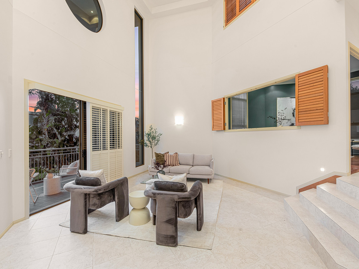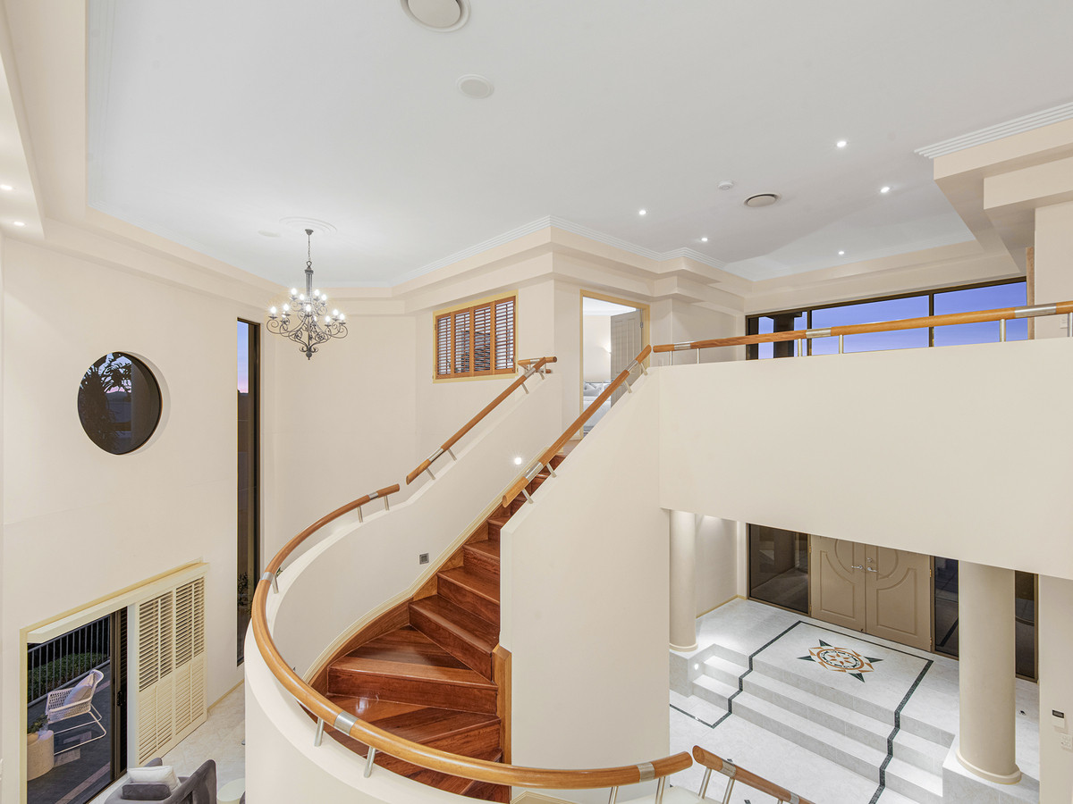 This spectacular home is an entertainer’s paradise and private sanctuary in one. The thoughtful floorplan is crafted to balance luxurious liveability with cinematic surrounds, allowing panoramic views while maintaining total privacy. The outlook is ever-changing from sunrise to sunset. Enjoy a front-row seat from the balcony to Christmas carols fireworks at Peter Lightfoot Oval, a spectacular seasonal highlight unique to this vantage point. Step through the double front doors and be welcomed into a residence of scale and distinction. High ceilings and feature stone tiling set the tone in the entryway, leading into a selection of expansive living and dining zones that flow seamlessly to the outdoor entertaining terrace.